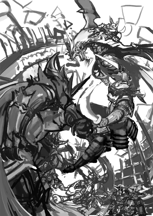 一番最初に描いたラフですが、これを元に描くことにしましたー。