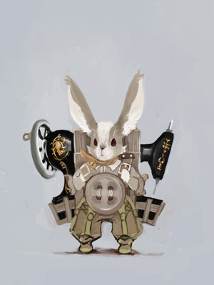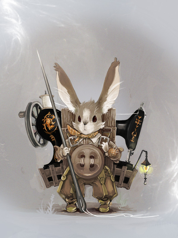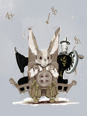 最初の段階ではでっかいリュックに裁縫道具をつめて、と考えていたのですけれど、多少強引なくらい裁縫裁縫していたほうがいいと思ってミシンとチェンジ!ちなみにモデルは、近所の保育園で放し飼いにされてるうさぎちゃん。