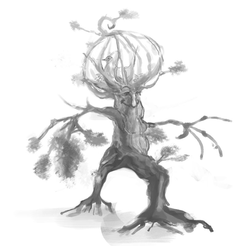 そしてもう1キャラは、愛くるしいエントの初老の女性近衛騎士だったので、女性エント描いてみました。
