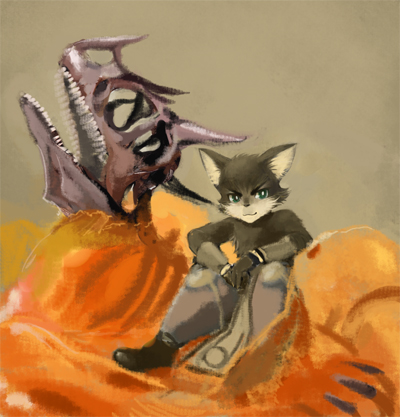 設定は超巨大な琥珀(神木的な)にうまってる、かわいそうなドラゴンちゃんを発掘する、獣人トレジャーハンター君って感じ。ちなみにグランミリオンです。