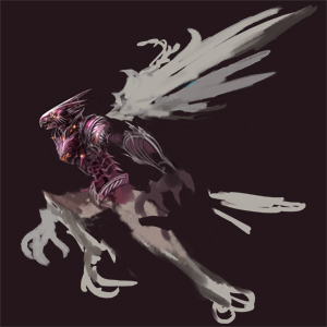 翼を画面内に収めると、全体的に描き込みがつぶれちゃうので、キャラシートということもあり、小ぢんまりさせる直立ポーズにしました。性格も荒々しいというよりはまじめな武人タイプの人間なのでこっちの方が合ってる気がします。腹部~下半身もそれにあわせて少しガッチリ目に。